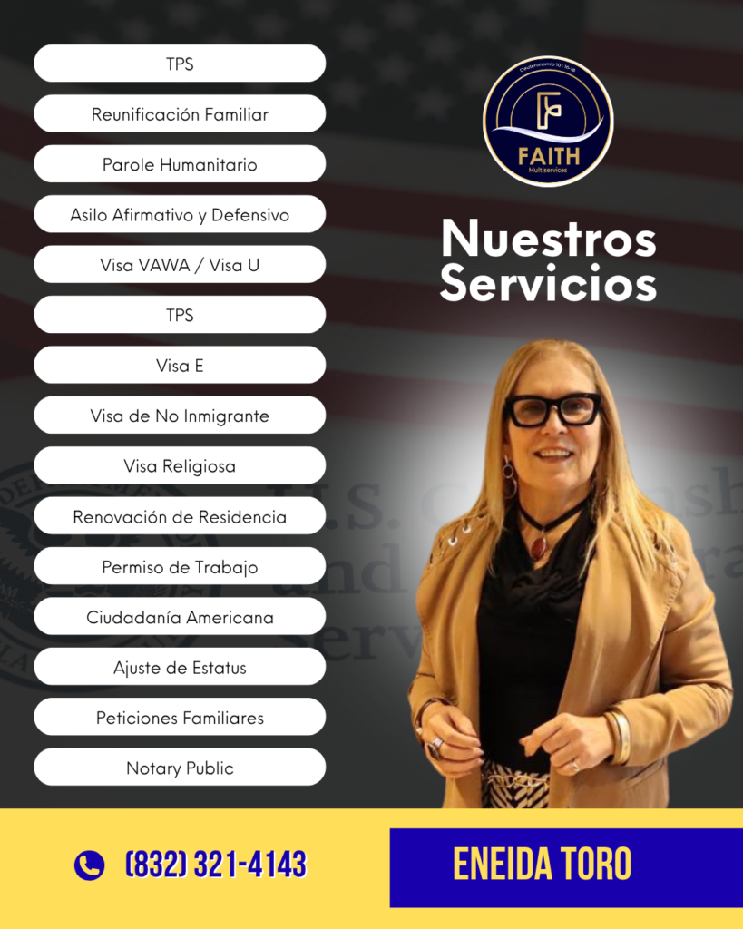 En Faith Multiservices te acompañamos con responsabilidad y experiencia en la preparación de formularios de inmigración, servicios administrativos y formación especializada, para que tomes decisiones informadas y seguras.